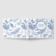 Elegant Blue Toile Print Personalised Baby Shower Guest Book. Watercolor toile print wishes for baby keepsake book is a classic baby shower decor must-have. Classic white and blue toile print background with customisable mum-to-be name and baby shower date.