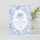 Elegant Blue Toile Rose Floral 50th Birthday Invit Invitation