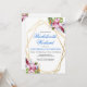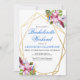 Soft pink and purple tropical watercolor flowers within a gold double geometric frame feature botanical and festive flourishes. Customise this bachelorette weekend getaway invitation with your own colours and fonts or keep this popular typography as it is for your convenience. MIx and match with other items in this beautiful wedding collection.
