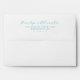 This wedding envelope features a minimalist and elegant design with centered text on a plain white background. The layout includes a light blue cursive script for the names, paired with clean sans-serif font for address details, creating a sophisticated look. Customizable placeholders allow for personalization of addresses and contact information, making it ideal for formal announcements. The simple color palette and balanced composition convey a refined and modern aesthetic, perfect for weddings or special events.