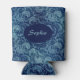 Elegant Blue Vintage Damask Pattern Can Cooler