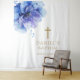 Elegant Blue Watercolor Floral Baptism Backdrop Tapestry