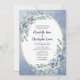 Elegant Blue Watercolor Floral Oval Frame Wedding Invitation