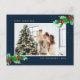 Elegant Blue Watercolor Holly Photo Christmas Holiday Postcard
