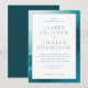 This elegant wedding invitation features a serene watercolor design with soft blue-green hues framing the crisp white central area, creating a calming and sophisticated atmosphere. The minimalist layout emphasizes clarity and balance, using ample white space to highlight the classic serif typography that conveys formality and timelessness. Perfect for couples seeking an understated yet refined aesthetic, this invitation is ideal for celebrating love in style.