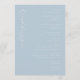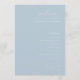This wedding program features a minimalist and elegant design with a soft pastel blue background, creating a serene and calming atmosphere. The layout is centred and vertically aligned, emphasising clarity and simplicity, while the typography combines cursive and sans-serif fonts to add sophistication and readability. Perfect for couples seeking a contemporary and formal look, this template allows customisation of names, dates, and locations, making it ideal for personalising your special day. The absence of additional motifs keeps the focus on the text, ensuring a clean and modern aesthetic that conveys tranquillity and celebration.