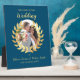 Elegant blue and gold colored wreath custom photo wedding welcome plaque.