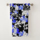 Elegant Blue White Black Floral Pattern Bath Towel Set