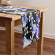 Elegant Blue White Black Floral Pattern Short Table Runner