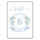 Immerse yourself in timeless elegance with our modern floral wedding table numbers, perfect for adding sophistication to your celebration. Each number features a delicate blue wedding crest decorated with light blue and white flower blooms and cute monogram at the back, enhancing the beauty of your table settings. Ideal for rustic, bohemian, and garden-themed weddings, they ensure a memorable and stylish event for you and your guests.