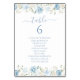 Elegant Blue White Floral Crest Wedding Table Number