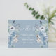 Simple modern light cornflower blue & white floral “Save the Date” card. Names are done in elegant white script. Perfect for that spring, summer, fall or winter wedding.