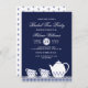 Elegant White Blue Small Floral Tea Party Bridal Shower Invitation