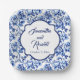 Elegant Blue White Floral Toile Wedding Paper Plate
