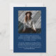 Announce your graduate’s milestone in timeless, sophisticated style with this elegant blue and white graduation announcement card. Featuring a trendy blue background, the design highlights the word “GRAD” in a modern serif typeface, accented with a stylish graduation cap icon above the “R.” The flowing tail of the “R” transitions into a sleek tassel that connects the graduate’s name, school, and class year, creating a cohesive and high-end finish.