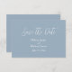 Simple modern light cornflower blue & white “Save the Date” card. Names are done in elegant white script. Perfect for that spring, summer, fall or winter wedding.