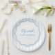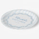 Elegant Blue White Stripes Wavy Scalloped Frame Paper Plate