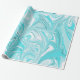 This modern wrapping paper has a dreamy blue and white marble pattern.