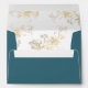 Elegant blue wedding envelope with exquisite faux foil gilded floral details inside! Design coordinating our "Enchanting Celestial Starry Night" collection invites. Envelope with elegant return address and named on back top flap with faux gilded element. Design with option to add or erase name(s) and address on top back flap. If you prefer to erase the faux gilded details inside or on the back flap, simply select "Edit Using Design Tool" and delete them on the editor screen. NOTES: 1) the default size A7 fits our 5" x 7" invitation cards, please make sure to select the right size for you before ordering (envelope measurements explanation on product page left bottom area), 2) Option to choose paper type from basic paper or linen (for a more formal and elegant style you might like to choose your envelopes in "Linen"). Same design also available in navy blue and in green. Part of our "Enchanting Celestial Starry Night" collection with a variety of coordinating products available. Visit the entire collection at: https://www.zazzle.com/collections/enchanting_celestial_starry_night-119778618338709536