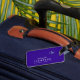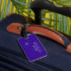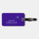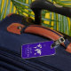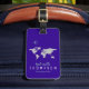 A nice and personalised blue luggage-tag with the map of the world and an aeroplane... to help identifying your luggage at the airport