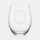 Elegant Blue Wreath 70th Birthday Party Stemless Wine Glass