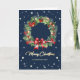 Elegant Blue Wreath Photo Merry Christmas Card