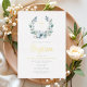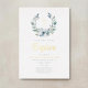 Elegant Blue Wreath Religious Cross Boy Baptism Foil Invitation.