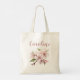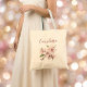 Romantic blush pink blossoms and flowing script lettering create a soft, elegant name design perfect for bridesmaids and wedding party totes. This delicate floral artwork on a warm neutral background suits spring or summer celebrations and adds a feminine touch to any outfit. Simply add your chosen name to create a beautiful keepsake for the big day.