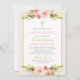 Elegant Blush Gold Floral Girl Christening Invitation