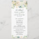 This elegant rustic style wedding ceremony program design features a beautiful border arrangement of neutral watercolor flowers, including painted roses, ranunculus flowers, and leaves in shades of white, blush pink, cream, gold, green. Perfect for a spring or summer event. Personalise the stylish leaf green and dark grey text on both sides of the card with your custom ceremony, wedding party, and thank you message wording.