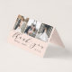 This elegant thank you card feature 3 photos with "thank you" in calligraphy script along with couple names and wedding date.