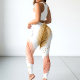 Elegant Blush Pink and Gold Glitter Pampas Grass Leggings