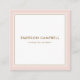 Square, white, professional business cards or personal profile cards with blush pink borders. Customizable name and title/company name on the front. On the back are customizable template fields for name, title/company name/specialty and contact information. A minimal and classy design