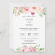 Vibrant watercolor blush pink florals and delicate green foliage arrangement borders, formal wedding invitation. Modern and elegant typography design template. Back of card features solid cream pink colour that can be customised.