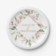 Elegant Blush Pink Floral Gold Script Wedding Paper Plate