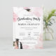 Celebrate your graduate's big achievement in style with this elegant blush pink floral graduation party invitation! Featuring soft watercolor florals, a charming female graduate illustration, and classic black typography, this template is fully customisable to fit your event details. Ideal for high school or college graduations, this invitation adds a sophisticated and feminine touch to your celebration.