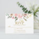 Elegant Blush Pink Floral Peony Gold Wedding RSVP Card
