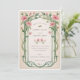 This beautifully crafted wedding invitation suite exudes elegance and charm, perfect for announcing your special day. The front features an intricate floral design with soft pink blooms and sage green leaves, encircling a delicate white oval space where your monogram can be personalised. The back of the invitation reveals a harmonious continuation of the floral theme, with an exquisite arrangement that frames the wedding details. This invitation uses a palette of blush pink, sage green, and subtle touches of deep green for a natural and romantic aesthetic. The timeless font adds a classic touch to the modern design, making it an ideal choice for your vintage-inspired wedding.