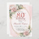 Elegant Blush Pink Flowers Gold Glitter 80th Bday Invitation