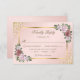 Elegant blush and gold floral wedding rsvp card featuring blush pink flowers and greenery framing the wedding details inside a gold frame adorned with gold confetti. Matching items available.