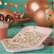 A stunning design where gilded "30" numbers are filled with luminous pearls, setting the stage for a milestone birthday. Gold confetti and pearlescent balloons drift across the soft blush background, creating a festive atmosphere. This paper plate is fully customisable with a name and date.
