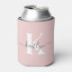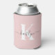 Elegant Blush Pink Grey Script Monogram Can Cooler
