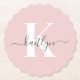 These simple, elegant blush pink round fluted edge paper coasters with your first name in a trendy script font in grey and your first initial in a modern cap font in white are perfect for keeping your tables and counters free from water rings. They absorb droplets so you don't have to worry when your entertaining or enjoying a drink. They're stylish and trendy and yet very classic.
