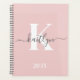 Elegant Blush Pink Grey Script Monogram Planner