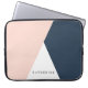 Elegant blush pink & navy blue geometric triangles laptop sleeve