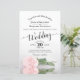 This beautiful budget or affordable wedding invitation features a romantic design with a single long-stemmed blush pink rose laying on its side and reflecting in a pool of water. The typography features lacy script calligraphy and a sophisticated layout. The back is a marbled pale pastel pink colour. Wonderful way to invite your friends and family to share in your joy on your special day.