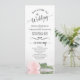 This beautiful wedding program features an elegant design with a single long stemmed pale blush pink coloured rose lying on its side reflecting in water. The titles are written in fancy script calligraphy, and there is space for your ceremony and wedding party details, as well as a short thank you for your guests. Wonderful way to welcome your friends and family to your wedding celebration.