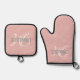 Modern blush pink script monogram name Oven Mitt & Pot Holder Set. Personalise with name and initial.
