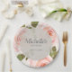 Beautiful soft blush pink watercolor floral with green leaves custom birthday party paper plates for girls or women. Personalised with the name of the guest of honour and her party date. Perfect for the springtime or summer birthday party.