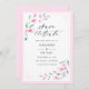 Elegant airy watercolor design. Twigs with blush pink flowers and green leaves resembling cherry blossom. Light pastel colours: blush pink, pink, light green, mint green. Blush pink border. Modern calligraphy font.